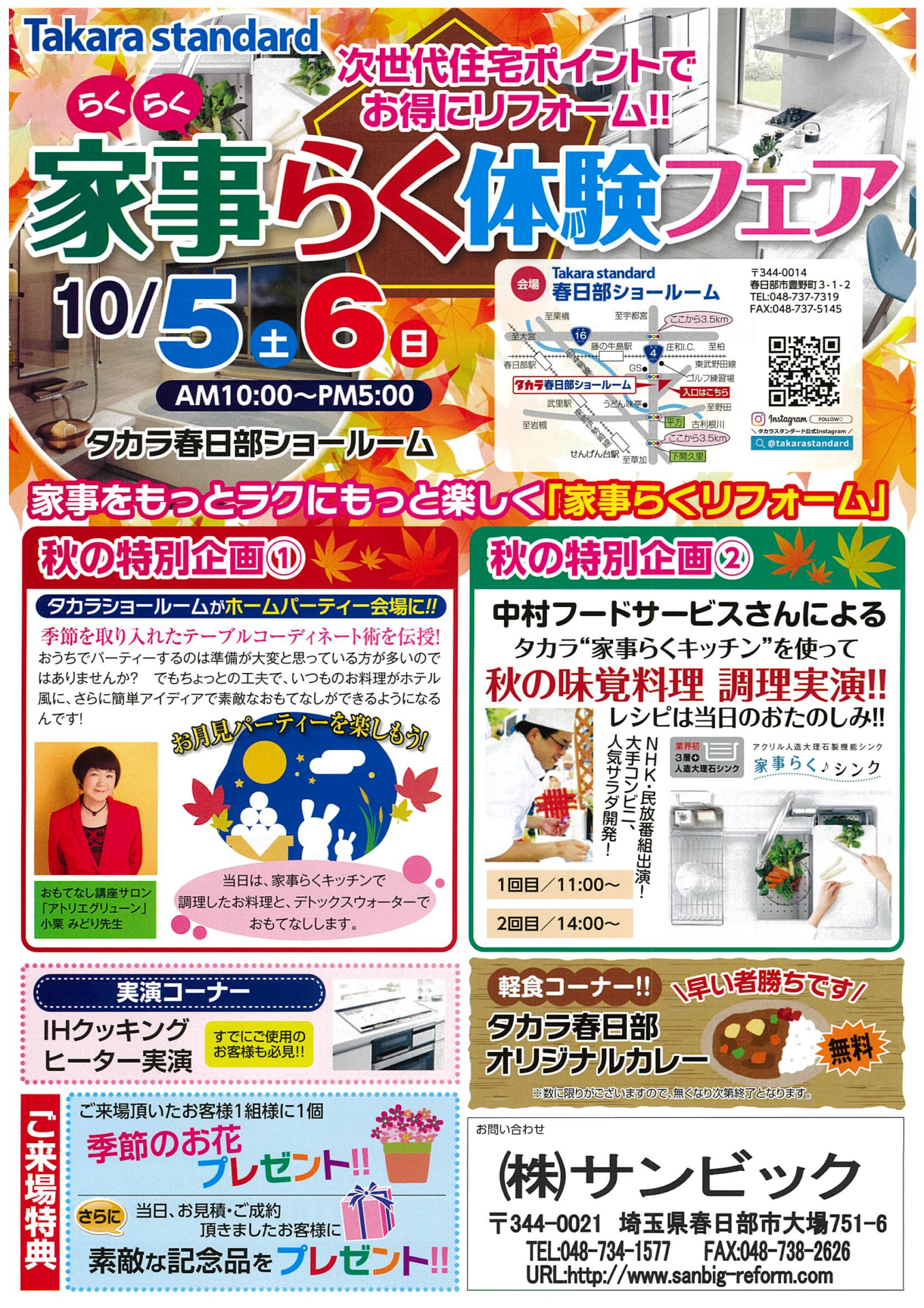 - 「家事らく体験フェア」タカラ春日部ショールームで開催致します。ぜひお立ち寄りください!
