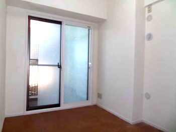 施工前の写真です。外壁面にエコカラットが貼られ外気温の冷たさが部屋に直に伝わっています。