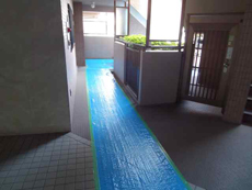 施工前に共用部分の養生を行いました。マンションリフォームでは近隣配慮がとても大切になります。
