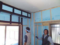 断熱工事後、ボードを貼り壁を仕上げます。