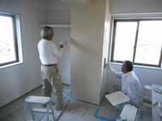珪藻土は下地塗りをした後に、仕上げ塗りをします。お好みの色加減と模様に仕上げていきます。