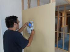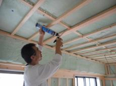 吹き付け断熱の欠損部分には、手作業で充填していきます。